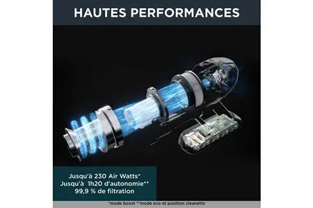 Cette technologie offre une puissance d'aspiration maximale de 230 air-watts.