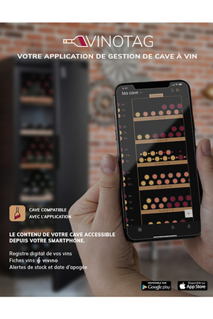 Cette cave à vin est compatible avec l'application Vinotag. Application gratuite de gestion de cave à vin. Accédez à une représentation digitale de votre cave et au registre détaillé de son contenu.