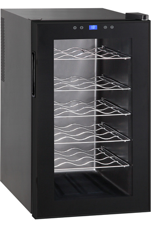 D'une capacité de 50 litres, elle peut contenir jusqu'à 18 bouteilles disposées sur 5 clayettes métalliques peinture chromée.
