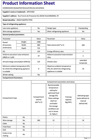Cette cave de vieillissement Artevino OXM1T182PPD offre une excellente maturation grâce à sa porte pleine ainsi qu'une grande capacité de stockage.