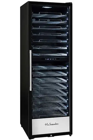 Cette cave la Sommelière PRO160DZN de la gamme professionnelle offre une excellente maturation grâce à sa porte vitrée anti-UV ainsi qu'une grande capacité pouvant aller jusqu'à 152 bouteilles de type Bordeaux 75cl.