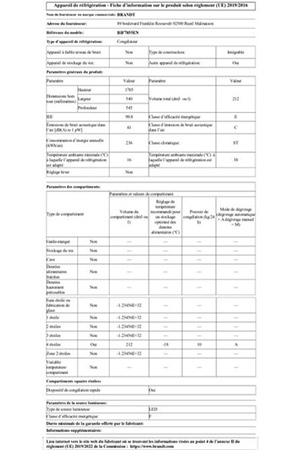 - Encastrable - Volume 212 L - Dimensions (H-L-P) : 178.5 x 54 x 54.5 cm - Classe E - 41 db