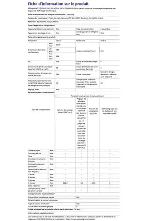- Volume : 323 L - Dimensions : (H-L-P) 186 x 59.5 x 69.4 cm - Classe E - 36 dB