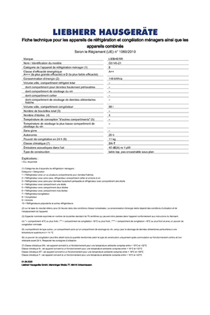 - Volume 98L - Dimensions 85.1x55.3x62.4 cm - Classe E - 39dB