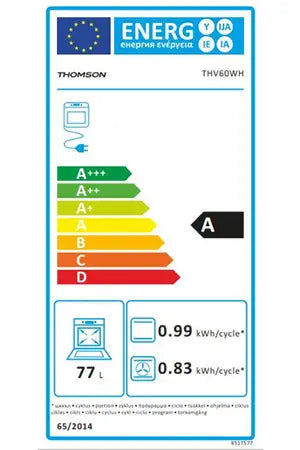 La cuisinière Thomson TVH60WH blanche est dotée de 4 foyers radiants et d'un four multifonction à chaleur tournante.