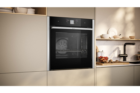Ce four encastrable Neff B64VT73N0 est un four intégrable qui combine chaleur tournante et vapeur. Il est doté de 20 modes de cuisson. Il dispose d'une capacité de 71 litres. De plus, il est équipé d'un programmateur électronique. Grâce à la chaleur tournante, vous réalisez des cuissons homogènes et vous avez la possibilité de cuisiner des plats complètement différents sans que les odeurs et saveurs se mélangent !