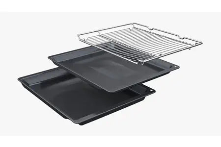 Livré avec 1 lèchefrite pour pyrolyse, 1 tôle de cuisson émaillée, 1 grille et un cordon électrique de 1,20m.