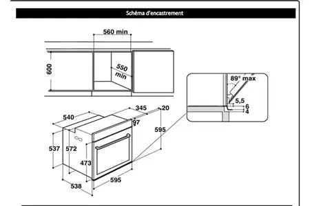 | Largeur d'encastrement |