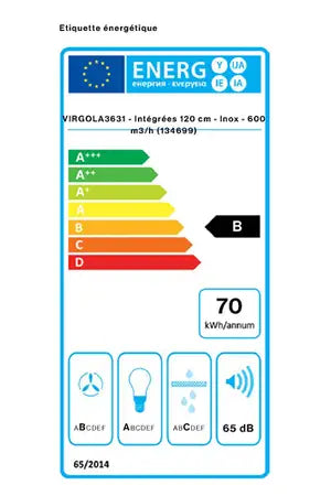 Son moteur pouvant aller jusqu'à 600m3/h en intensive reste toutefois discret en termes de niveau sonore. La hotte est équipée de 3 vitesses allant jusqu'à 480m3/h et ne dépassant pas les 65 dB.