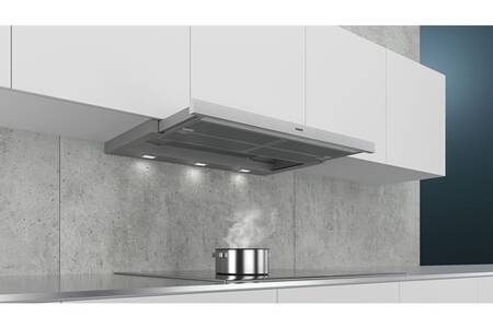 Cette hotte tiroir Siemens LI97SA531 INOX aspire et supprime toutes les mauvaises odeurs et fumées, grâce à sa puissance d'aspiration allant jusqu'à 729 m3/h en position intensive ! Ses 4 vitesses d'aspiration dont 1 intensive sont idéales pour adapter correctement l’aspiration à vos besoins. Silencieuse, cette hotte s’utilise à tout moment de la journée !
