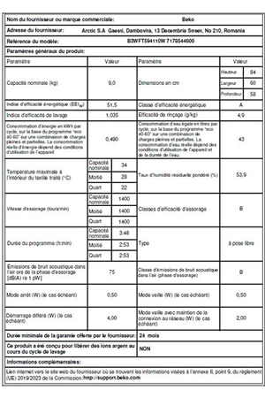 - Capacité 9kg (tambour 65 L) - Classe énergétique A