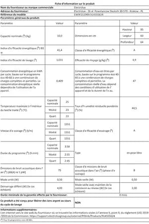 - Capacité 10 kg (4 personnes) - Classe énergétique A