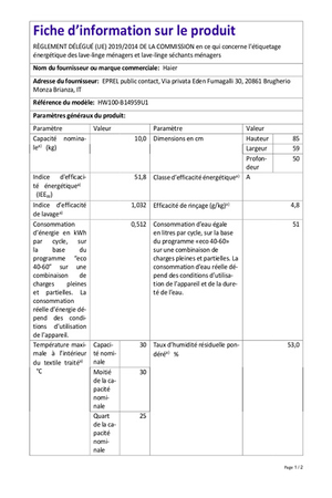 Lave-linge hublot HAIER HW100-B14959U1FR