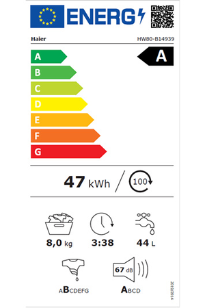 La machine à laver Haier HW80-B14939-FR de couleur blanche est doté d'une capacité de 8 kg, de 15 programmes et d'un moteur Direct Motion.