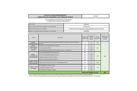 - Consommation d'énergie sur 100 cycles éco : 48 kWh