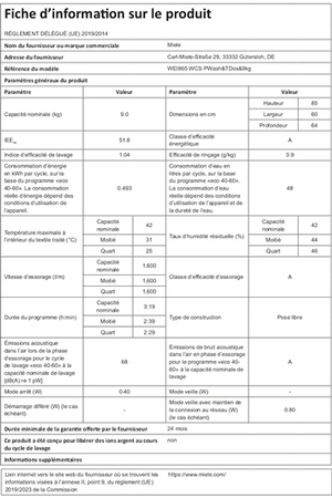 - Capacité 9kg (tambour 64 L) - Classe énergétique A