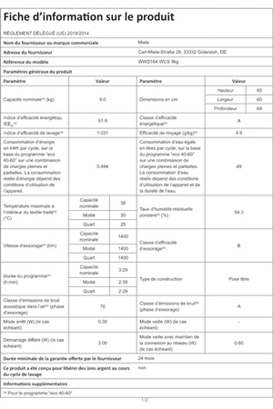 - Essorage variable jusqu'à 1400 tours/min - 70 dB