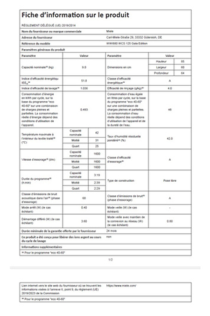 - Capacité 9kg (4 personnes) - tambour 64 L - Classe énergétique A