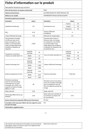 Contrôle à distance, statut de la machine à laver et assistant de lavage. (pilotage via l'application Miele@Mobile).