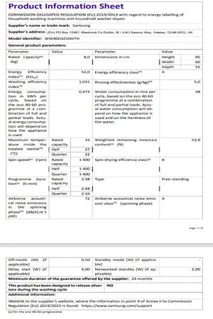 - Capacité 8 kg (4 personnes) - Tambour 61 L