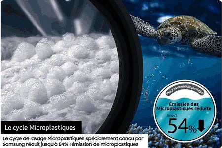Samsung, Ocean Wise Plastics Lab et Patagonia oeuvrent ensemble à trouver des solutions au problème de la pollution microplastiques. Le cycle de lavage microplastiques conçu par Samsung réduit jusqu'à 54 % l'émission de microplastiques.