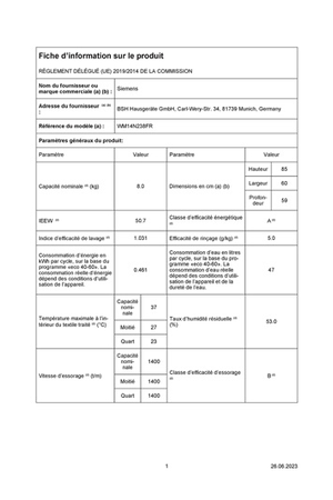 Lave-linge hublot SIEMENS WM14N238FR - IQ300