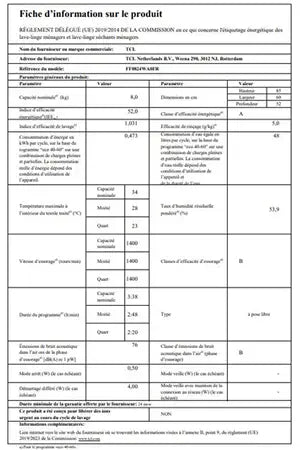 | Consommation d'eau sur 1 cycle éco - lavage |