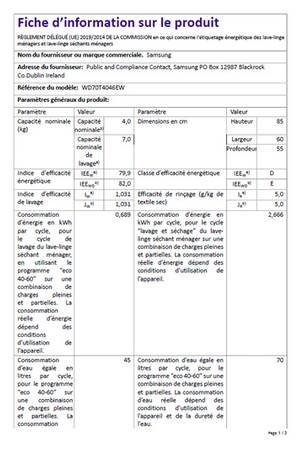 | Consommation d'énergie sur 100 cycles - lavage et séchage |