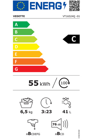 - Capacité 6.5 kg (tambour 42 L) - Classe énergétique C