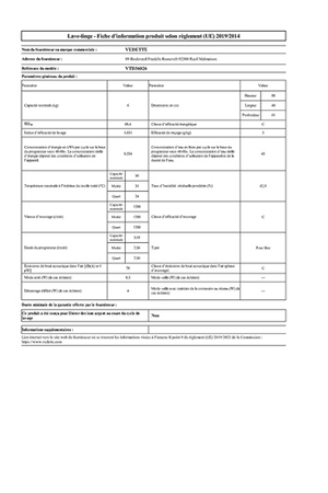 Le lave-linge Top Vedette VTD36026 blanc, d'une capacité de lavage de 6 Kg, est doté de 15 programmes dont un programme Rapide 45 minutes.