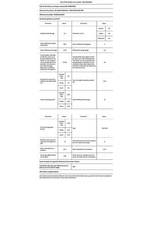 - Capacité 6.5kg (tambour 42 L) - Classe énergétique C
