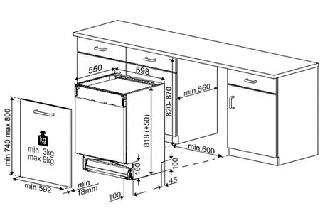 Avec ses charnières coulissantes, ce système permet une intégration parfaite du lave-vaisselle dans votre cuisine même pour les plinthes courtes (jusqu'à 6 cm).