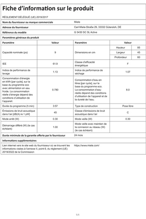 - Largeur 45 cm (9 couverts) - 45dB - Classe énergétique F