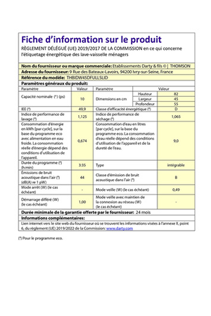 Lave-vaisselle Thomson THBIDW45DFULLSLID - ENCASTRABLE 45CM