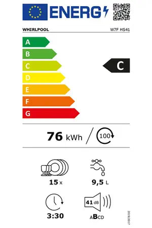 Ce lave-vaisselle Whirlpool W7FHS41, couleur blanc de 60 CM, offre un rangement de 15 couverts. Il dispose d'un rendement énergétique exceptionnel C avec une consommation d'énergie réduite.Technologie innovante assurant un fonctionnement parfaitement silencieux qui contribue à la discrétion de l’appareil. Enfin, excellentes performances de nettoyage, avec un lavage incomparable. Ce lave-vaisselle bénéficie également d'un système d'ouverture autmatique de la porte et d'un troisième tiroir modulable.