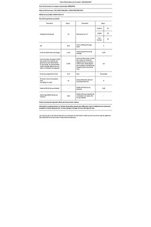 - Consommation d'eau 9.5 L/cycle - Classe énergétique C