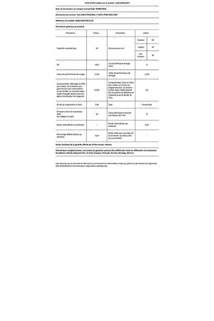| Consommation d'énergie sur 100 cycles éco |