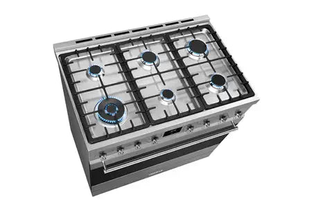 Cette cuisinière Smeg C9GMX2 inox est dotée de 6 foyers gaz dont 1 ultra rapide d'une puissance de 4200 W, idéal pour saisir vos aliments très rapidement. Elle est également équipée d'un four de 115 litres pouvant accueillir de grands plats!