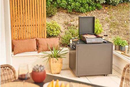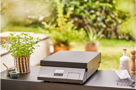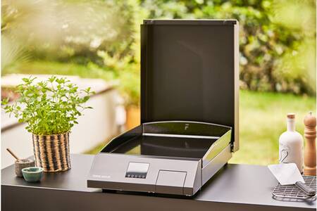 La plancha COOKING, avec son capot intégré, possède un châssis en acier qui saura s'intégrer de façon élégante dans votre cuisine ou votre jardin.