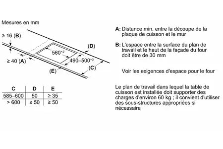 | Profondeur d'encastrement |