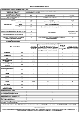 - Volume 286L - Dimensions (H-L-P) 182.4x54x57.5 cm - Classe E - 38dB