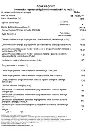 Sèche-linge BEKO B5T48243W IRONFINISH