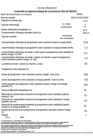 Ce sèche-linge frontal Beko DH11412CX0W blanc avec porte transparente, est doté d'une capacité de 11 kg, de 15 programmes, d'un tambour inox à alvéoles Aquawave et d'un système pompe à chaleur. Résultat : aucune dépense d'énergie, un temps de séchage constant et un résultat optimal.