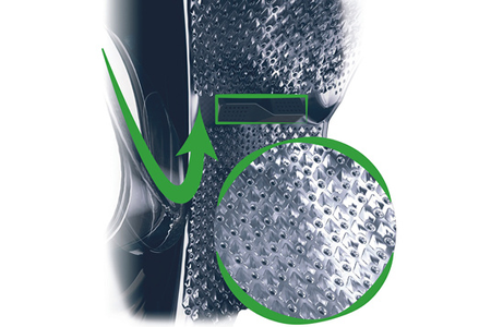Son tambour est équipé d'alvéoles, ce qui limite les frottements entre les vêtements et le tambour. Le linge est donc davantage préservé.