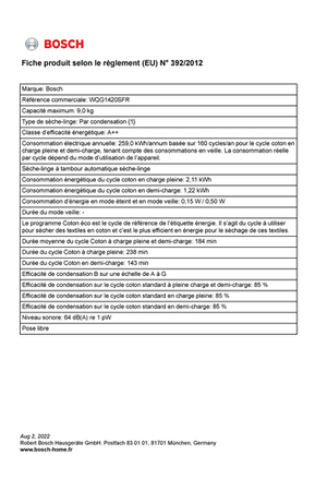 Sèche-linge BOSCH SERENITY WQG1420SFR